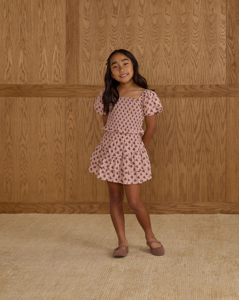 Our Trixie Top is a darling addition to any closet, featuring a cropped fit, bubbled sleeves, and a smocked bodice. Pair it with our Tiered Mini Skirt for a perfectly coordinated look.