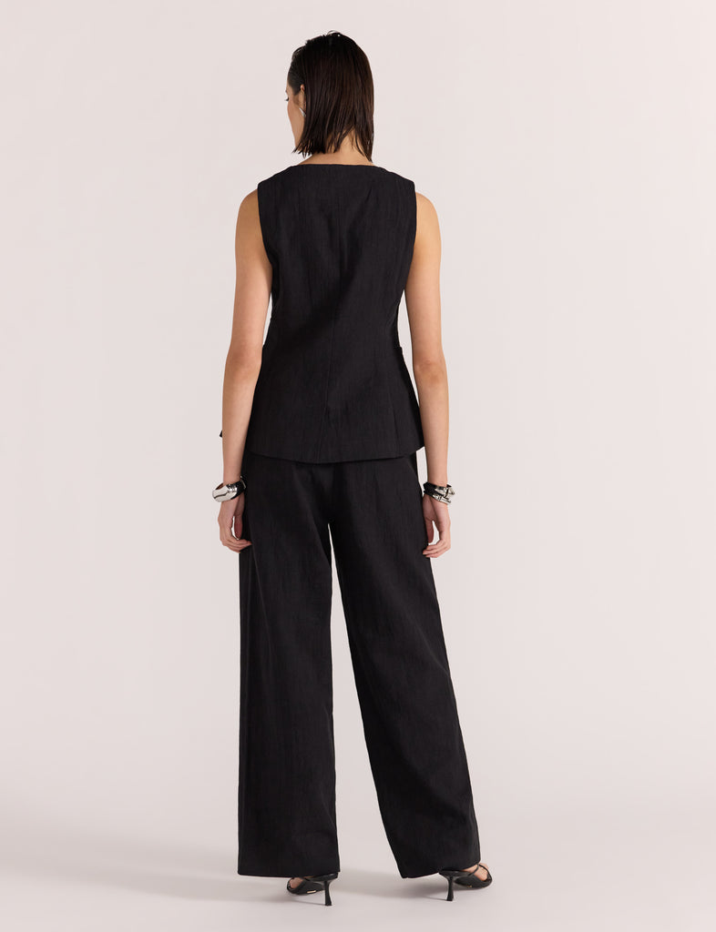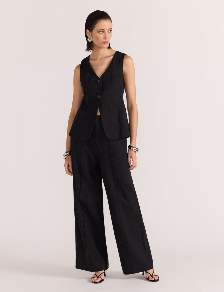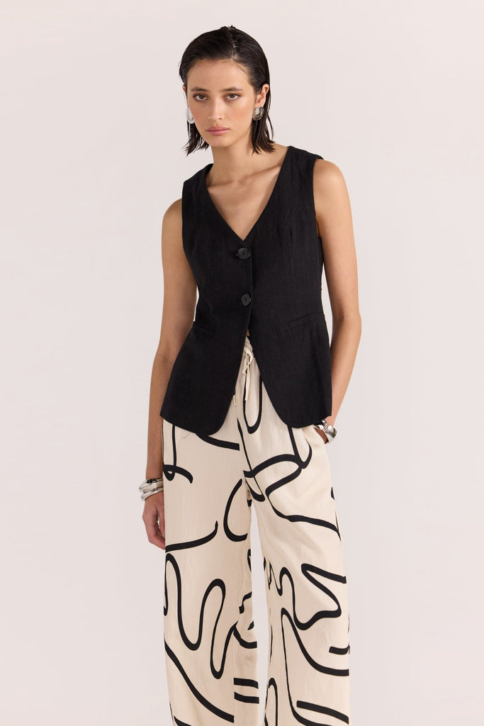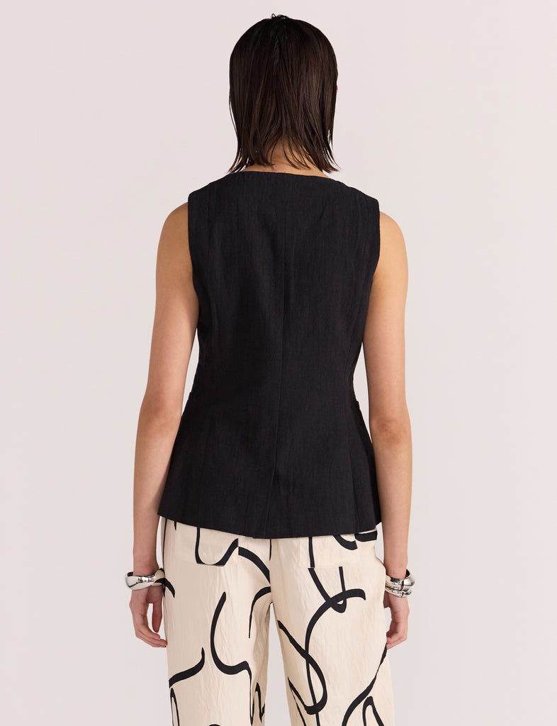 The Athena Linen Longline Vest by Staple the Label features a breezy, linen blend fabrication. Perfect for the warmer months.