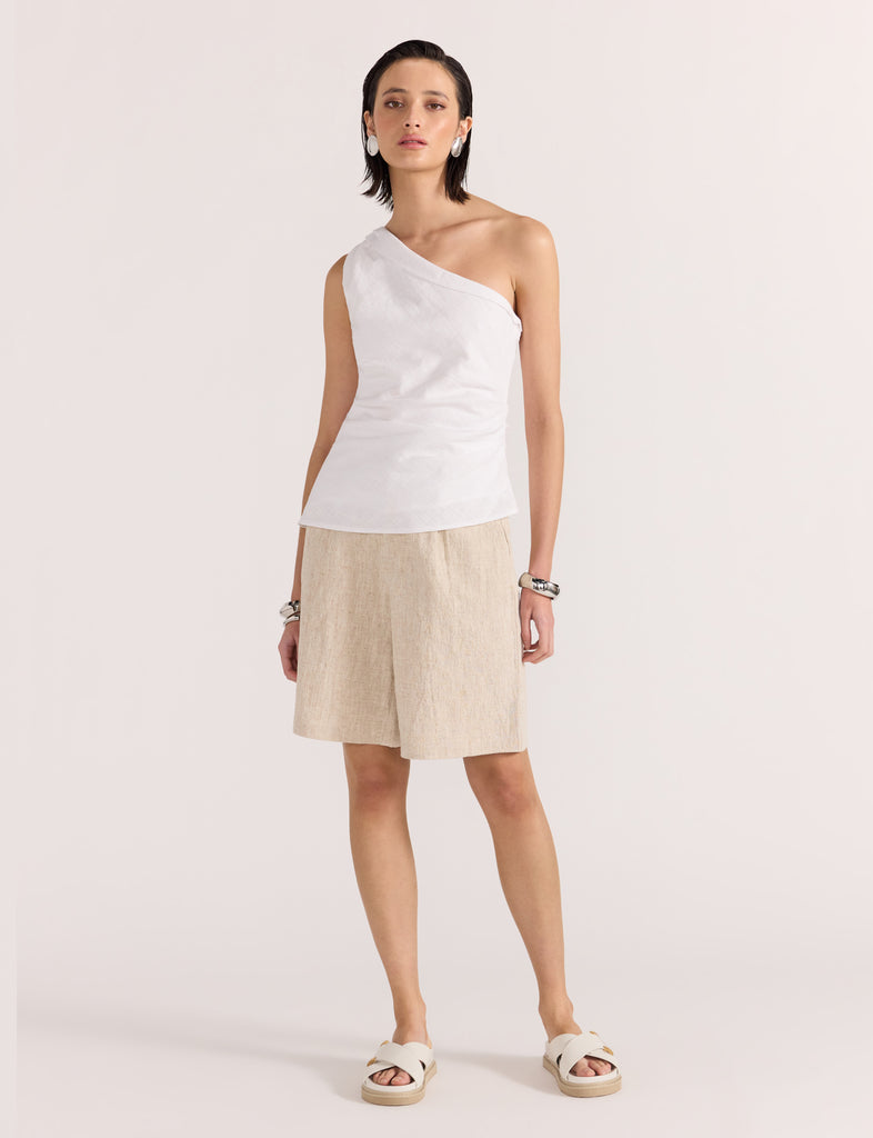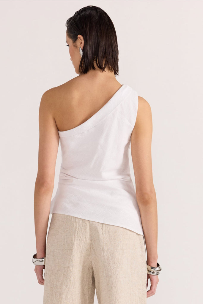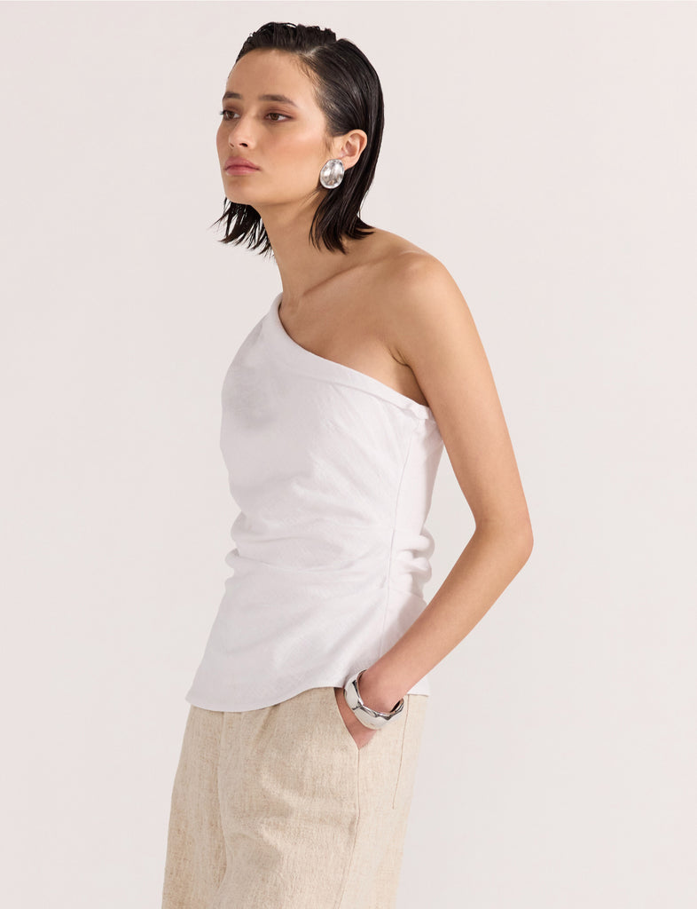 The Athena One Shoulder Top is a breathable, linen blend garment. Perfect for the warmer seasons to come.