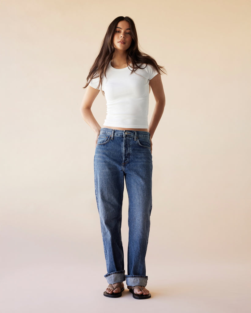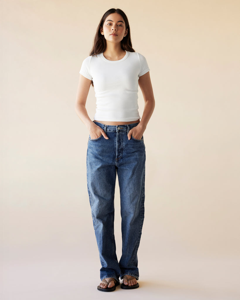 The Baby Tee is a wardrobe staple, thoughtfully crafted from premium cotton rib for a soft yet structured feel. Designed with a classic round neckline, short sleeves, and a flattering slim fit, this versatile style is a must have, the perfect everyday basic.