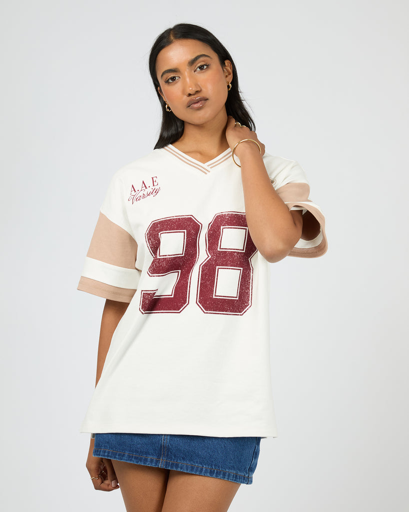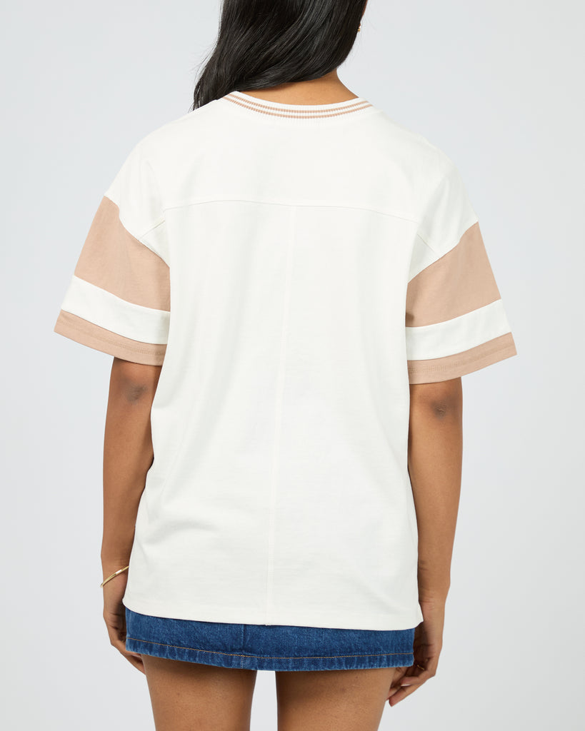 The Soho V-Neck Tee in Vintage White offers timeless casual style with a flattering neckline.