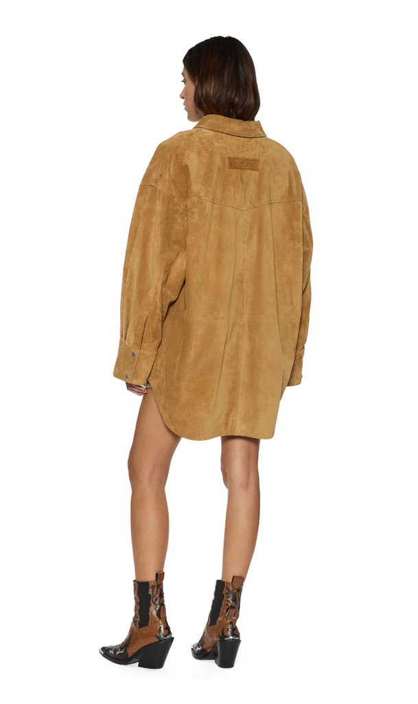 Button up shirt in an oversized fit, fabricated in stunning tan suede.