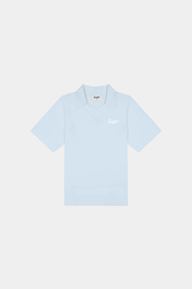 - Rib collar, placket & custom Huffer branded embroidery for that classic club house energy.