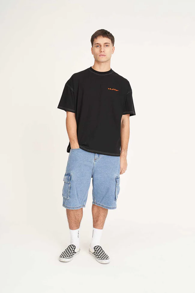 • What you need to know: 220gsm 100% Cotton, 20mm neck rib, classic streetwear fit, short sleeve with Huffer branded placement embroidered