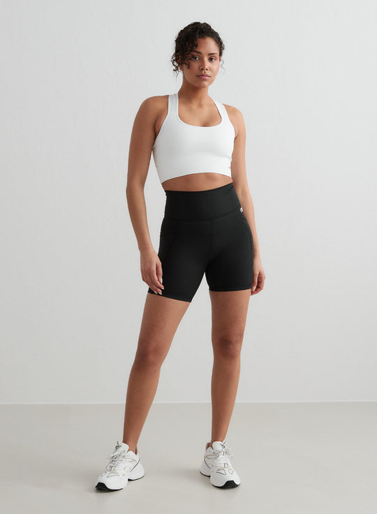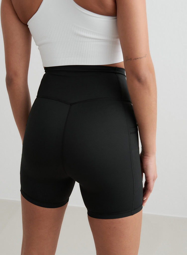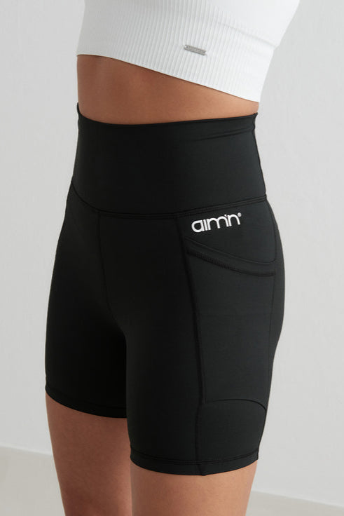 Double Pocket Midi Biker Shorts | Black