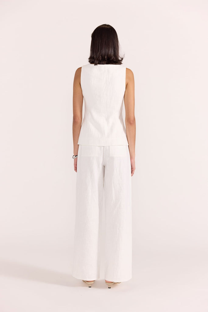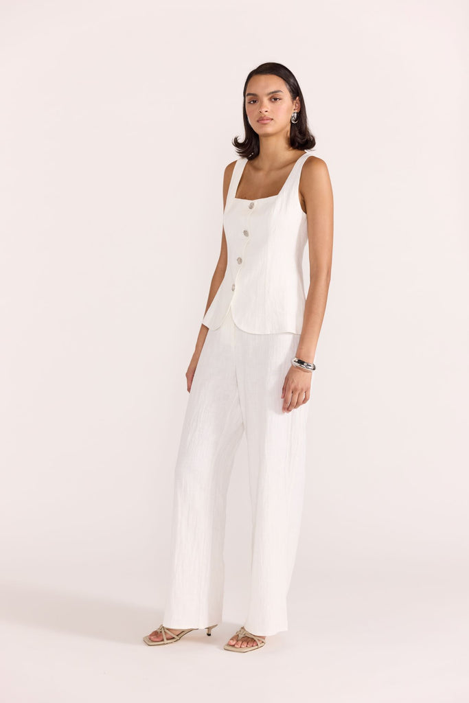 The Eden Pants are a classic white linen blend pant that can do no wrong. When the weather warms up adding that fresh palette of white is essential to your look. Style with the matching Eden Vest and whether you prefer heels or sandals the choice is yours, add some jewellery to compliment the buttons and your look is complete.