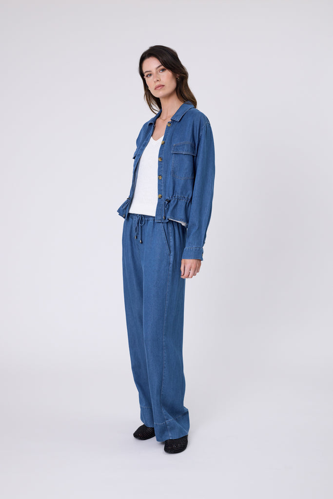 Relaxed and refined, the Fresco Pant is crafted in soft tencel with an effortless drape. Designed with a wide leg and full-length cut, it features an easy elasticated waistband with self-drawcord, angled side pockets and a faux fly detail. Finished with deep hem cuffs for a clean, polished edge. The perfect base for any outfit, pair with your favourite summer tops or style with the matching Fresco Jacket for a coordinated set.