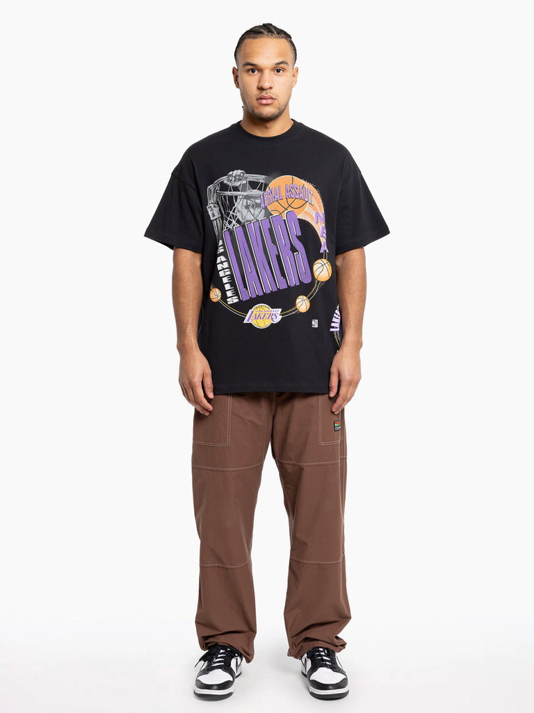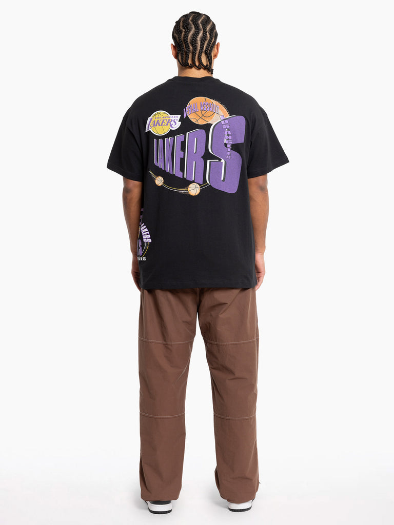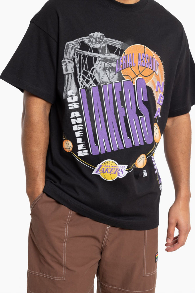 Elevate your look this season with our latest vintage Lakers Aerial Assault tee, featuring screen printed custom team graphics and made of soft cotton with a vintage wash. This tee is ideal for layering or wearing on its own.