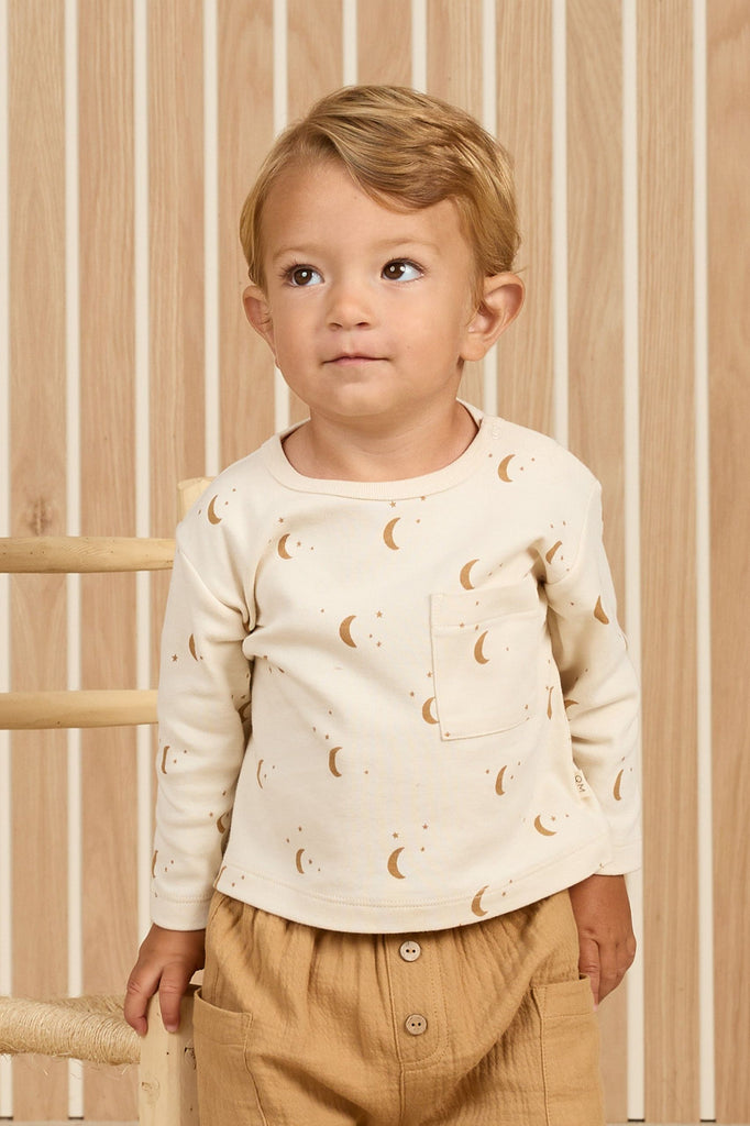 This long sleeve pocket tee is made of a soft organic brushed fabric. Featuring and chest pocket and a relaxed fit.