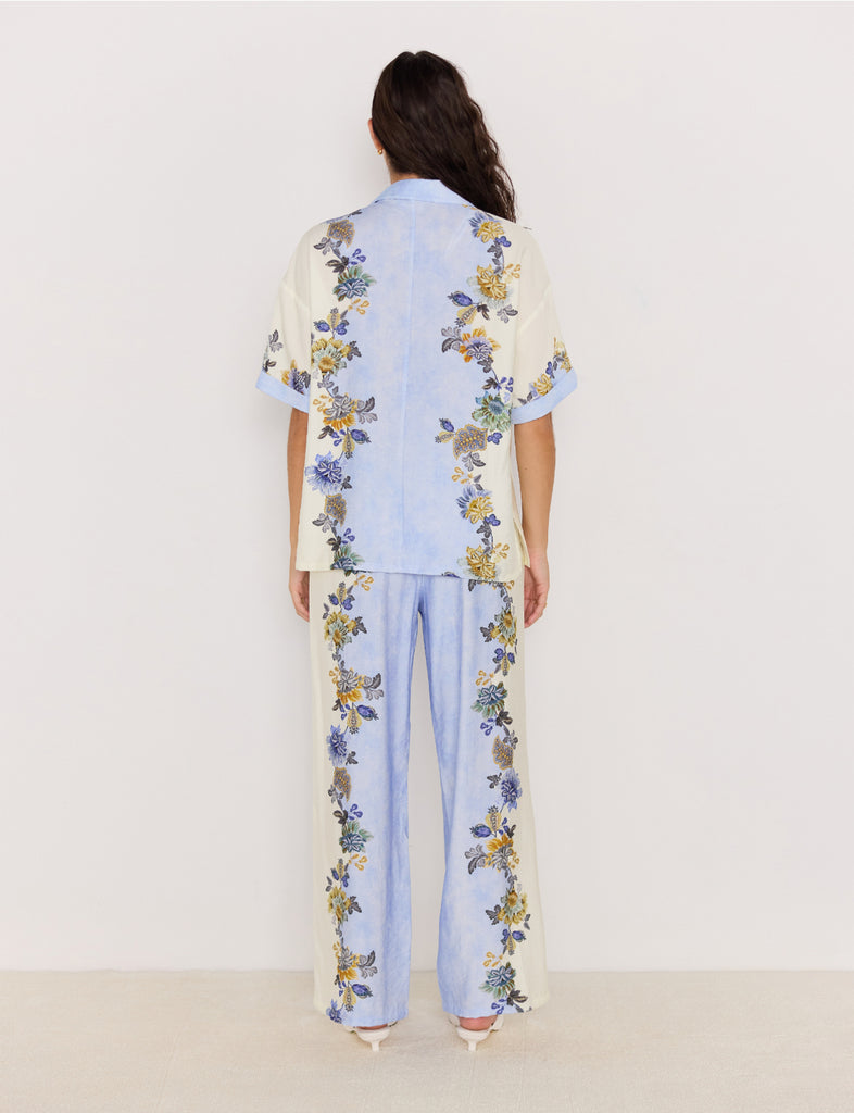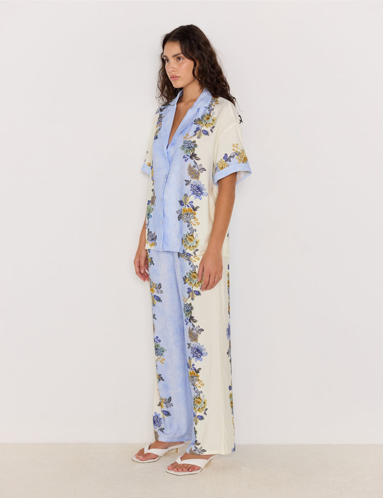The Lucia Blue & Cream Floral Wide-Leg Pants bring effortless style to any resort or casual look. Cut in a relaxed, wide-leg silhouette, they feature an elasticated drawstring waist for comfort and a bold floral print along the side panels for a flattering effect. Style them with the matching Lucia Resort Shirt for a co-ord moment or pair with a simple tank for off-duty chic.