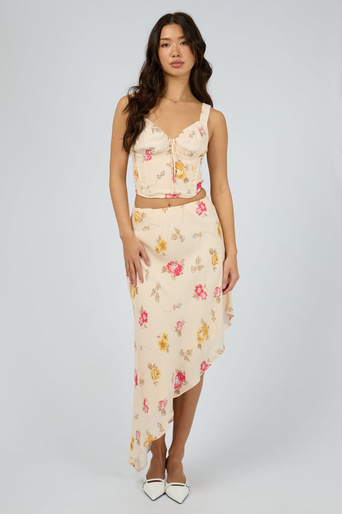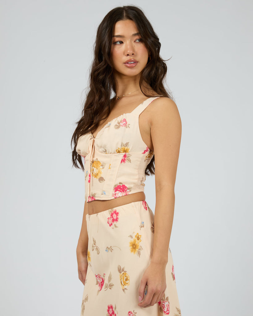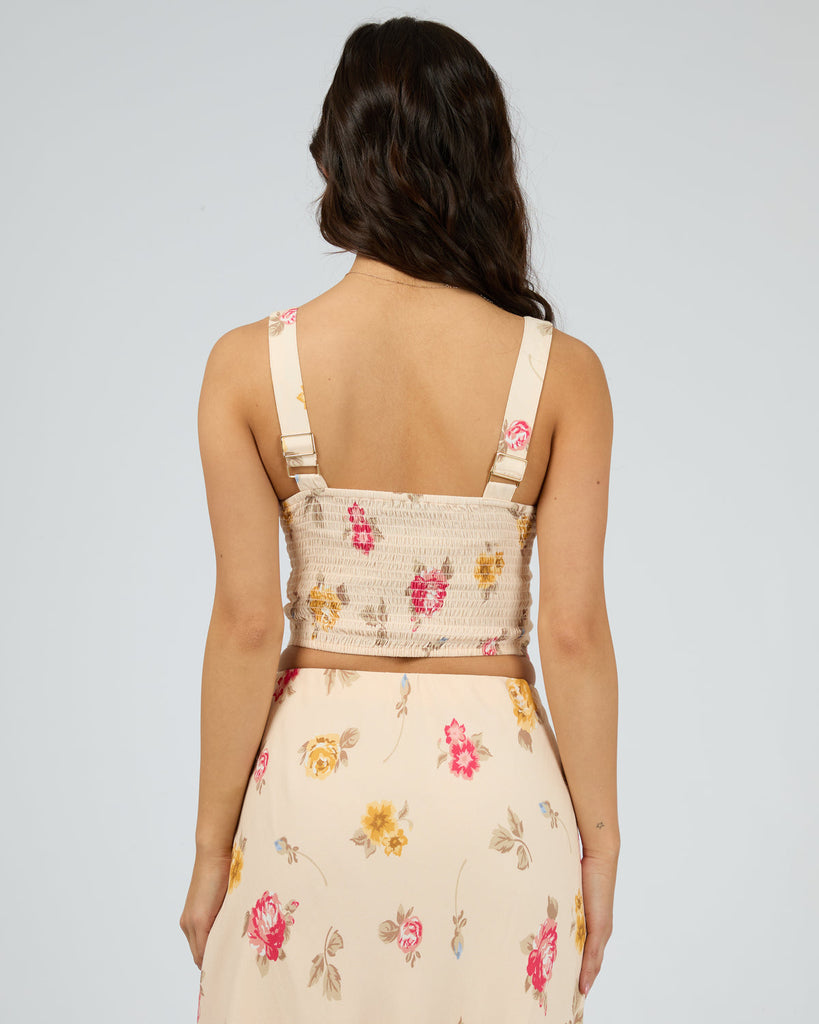 The Madelyn Corset Top is the perfect piece to elevate your Spring wardrobe. Crafted from a viscose fabrication in our exclusive floral yardage, this corset features boning, a shirred back and a adjustable straps.