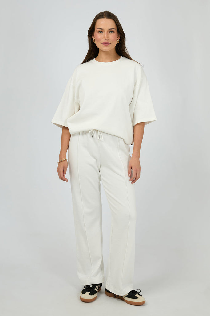 The Nara Wide Leg Trackpant is about to become a wadrobe go to. Made from a lightweight fleece this transseasonal piece features a front tonal piping detail and elastic waistband. Style back with your favourite basics for an effortless but stylish look.