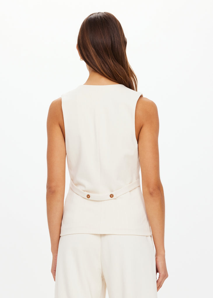 - Cream and white pinstripe V neck waistcoat in soft suiting lenzing fabrication