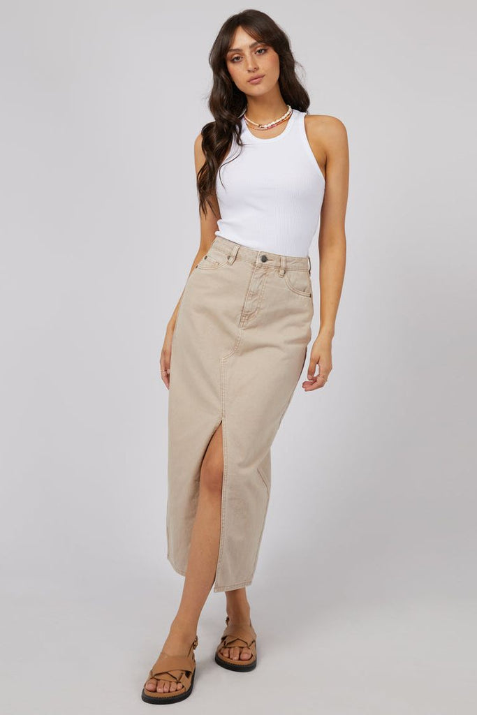 Refresh your spring and summer wardrobe with the Pia Maxi Skirt in Beige. Its effortless elegance and flowing silhouette make it a must-have for warm-weather styling. For a chic, coordinated look, pair it with the Harper Vest.