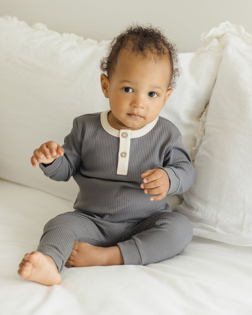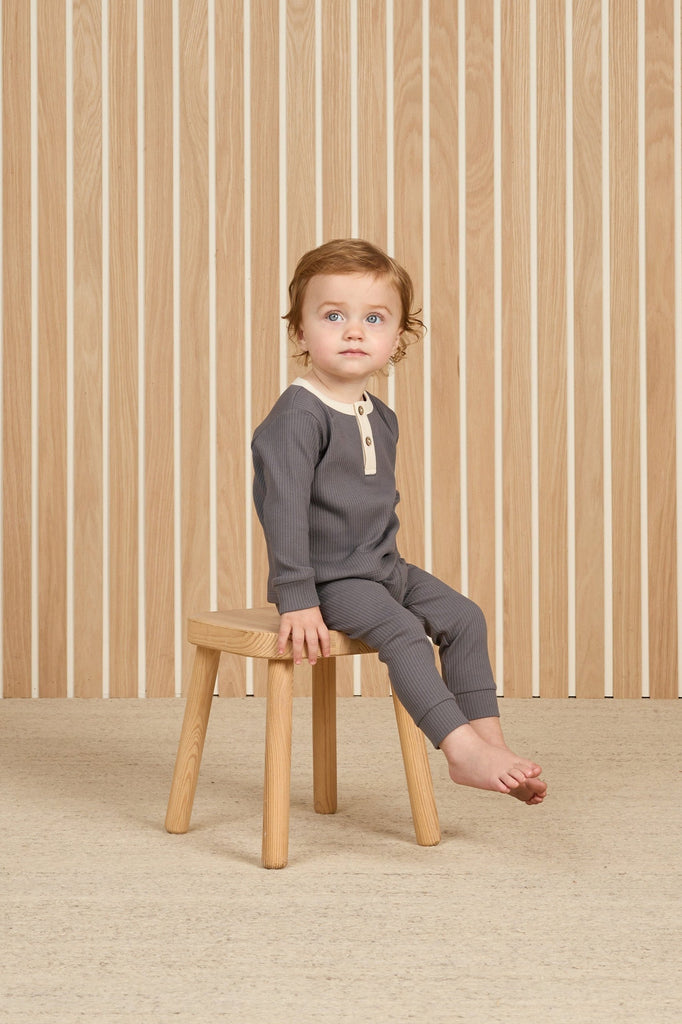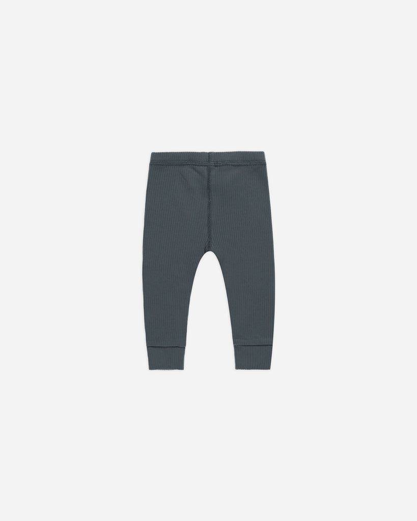 Knit legging in our stretchy rib knit with elastic waistband. Slim fit with added stretch to grow with your baby.