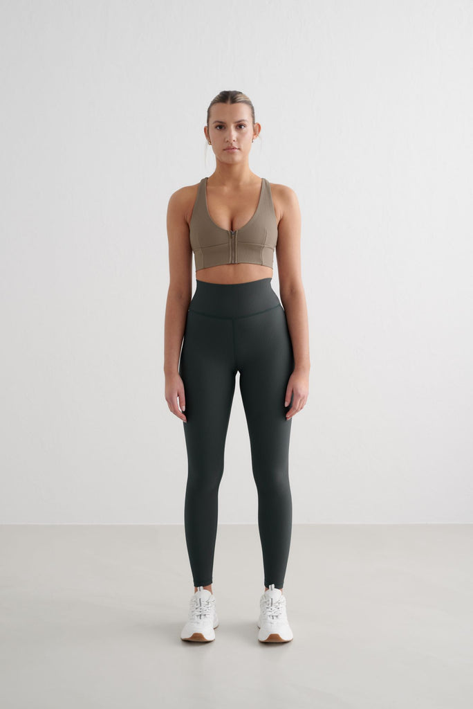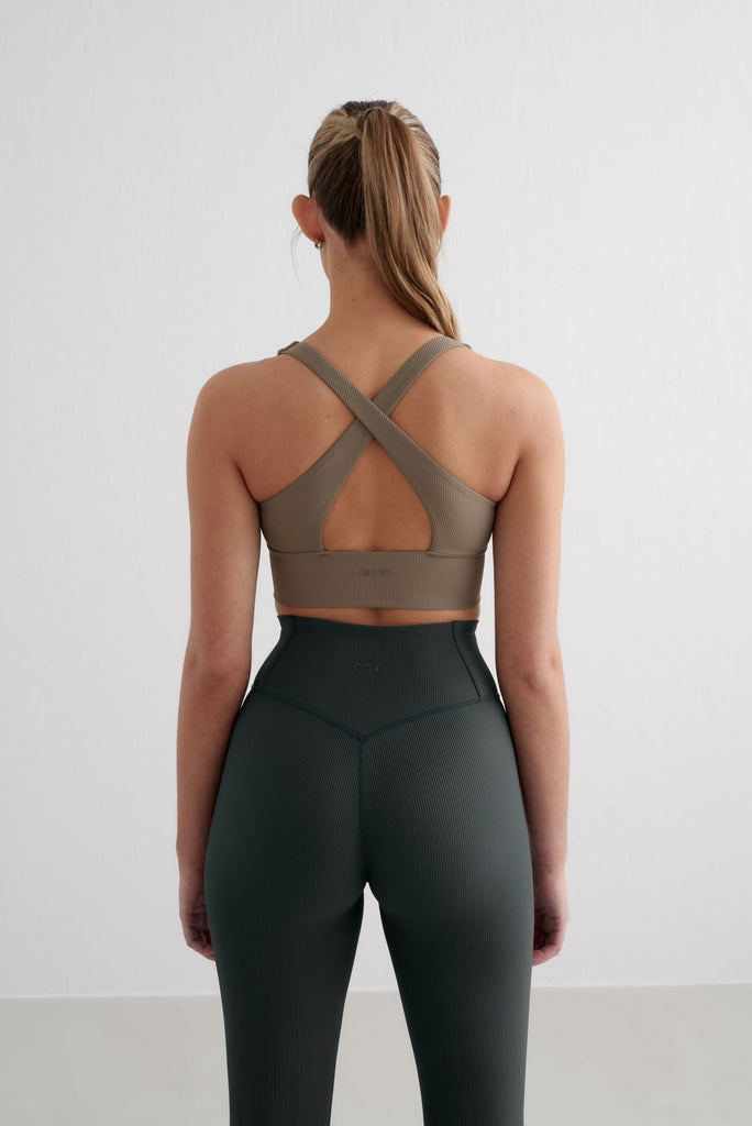 Ribbed Performance Zipped Bra | Nougat - is backordered and will ship as soon as it is back in stock.