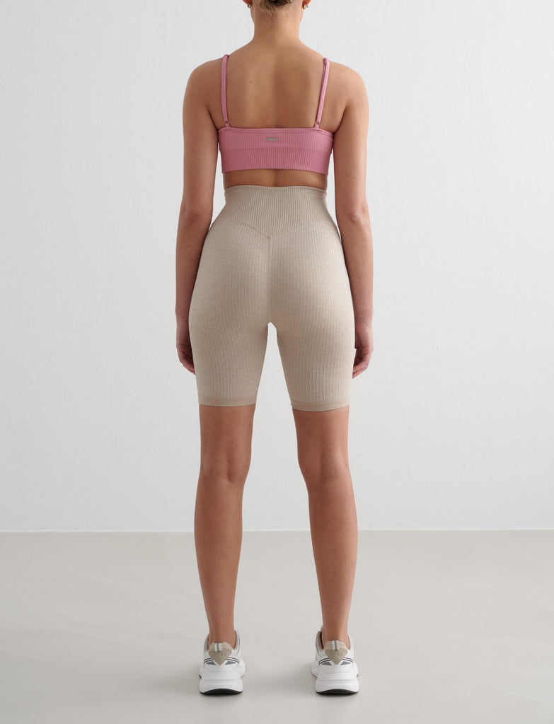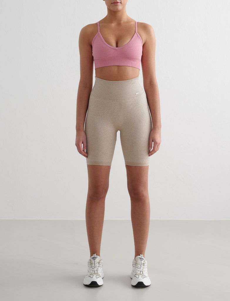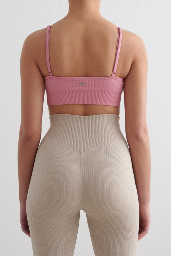 The Ribbed Seamless Deep Cut Bra is made from the signature Ribbed Seamless material. The sports bra offers light support and has a deep cut neckline at front. The sports bra has adjustable straps, is moisture-wicking and features a metal badge with an aim'n logo at the back.