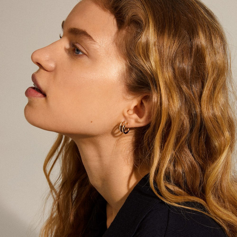 Adorable medium-sized hoops with brilliant, clear crystals. Roberta is a charming collection with a brilliant and classic touch of Nordic cool simplicity. These classic hoops are decorated with beautiful crystals for an exclusive look. We recommend using these self-proclaimed winners to complete the season's casually chic outfit, as well as the ultimate look.