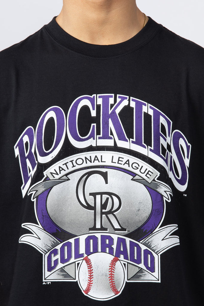 Coming in bold with this Colorado Rockies Vintage Banner Tee from Majestic! This tee oozes effortless style. Made with rich cotton, this regular fit tee features screen-printed design on the chest, a Majestic, MLB jocktag at the hem and loose double lined stitching at the sleeves and hem.