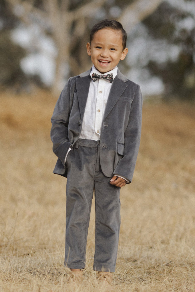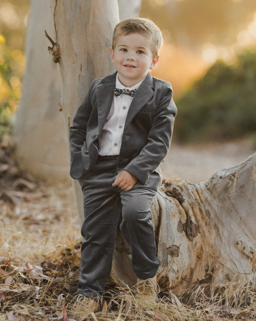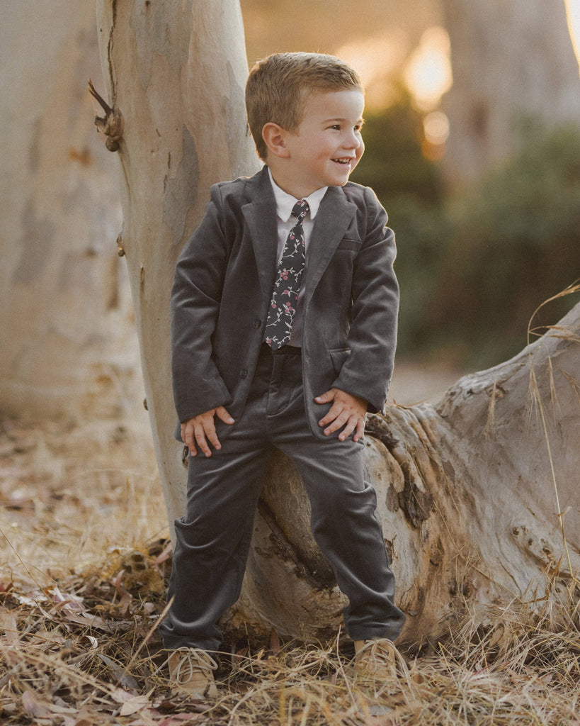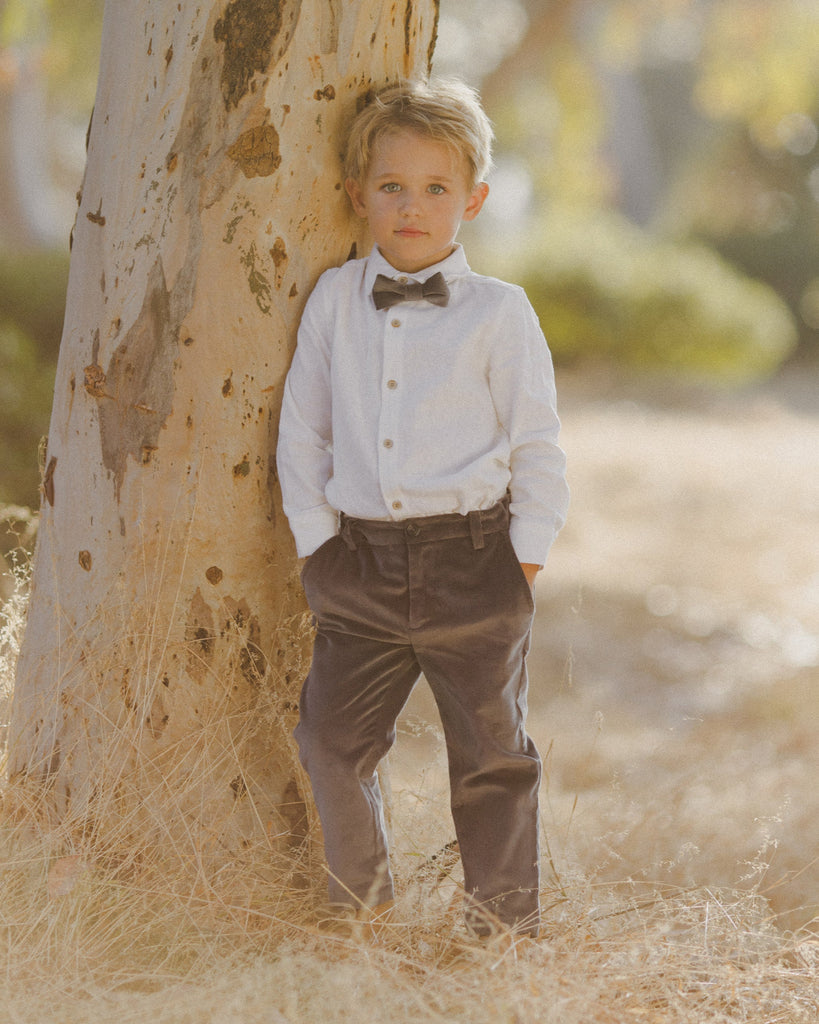 Our Sebastian Pant features tailored details made of soft textured cotton melange fabric. Pants include an adjustable elasticized waistband, zip fly with tonal wood buttons, and pockets. Wear it as a separate or better yet, suit up with the matching blazer and tie.