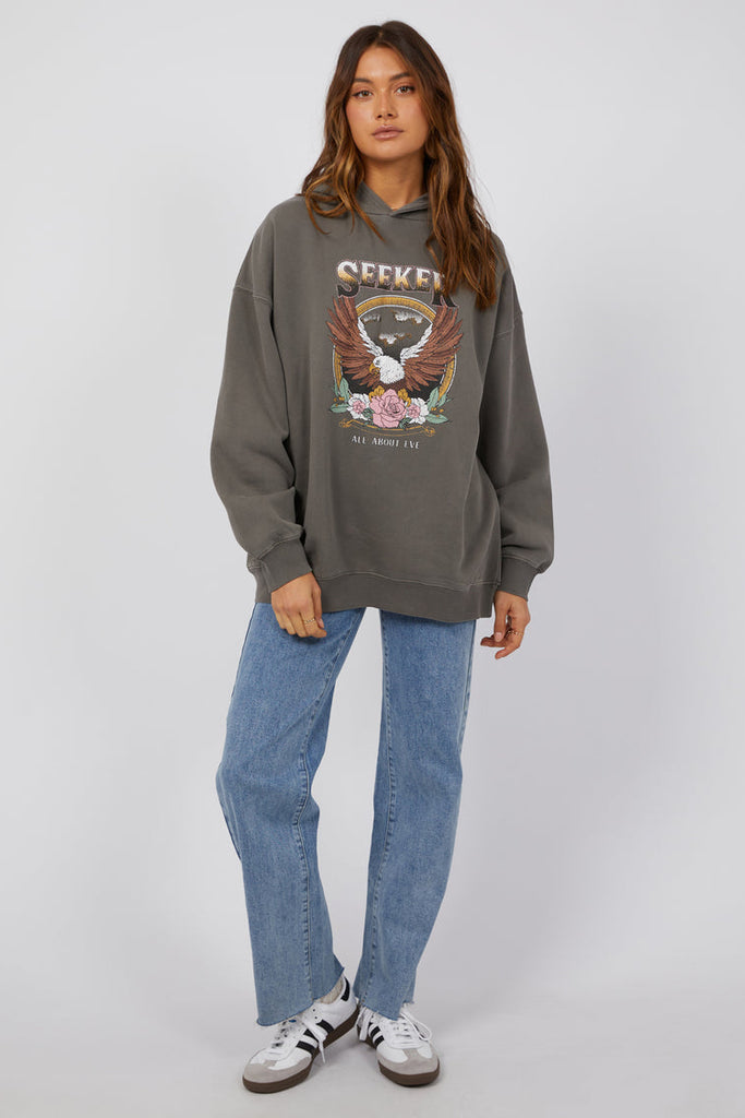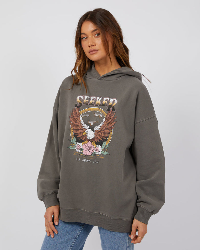 The Seeker Oversized Hoodie comes in a lovely thick and soft fleece fabrication with an exclusive chest print. Pair back with flares and sneakers for the perfect day look.