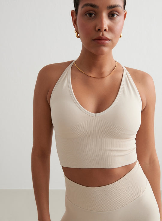 Shape Seamless Cross Back Bralette is a medium support bralette made from our signature Shape Seamless fabric. The cross-back bralette features removable pads,a deep cut at front and ribbed details. The sports bra has a glossy aim’n logo at centre front and strappy back details. Match with Shape bottoms to create a full Shape Seamless set.