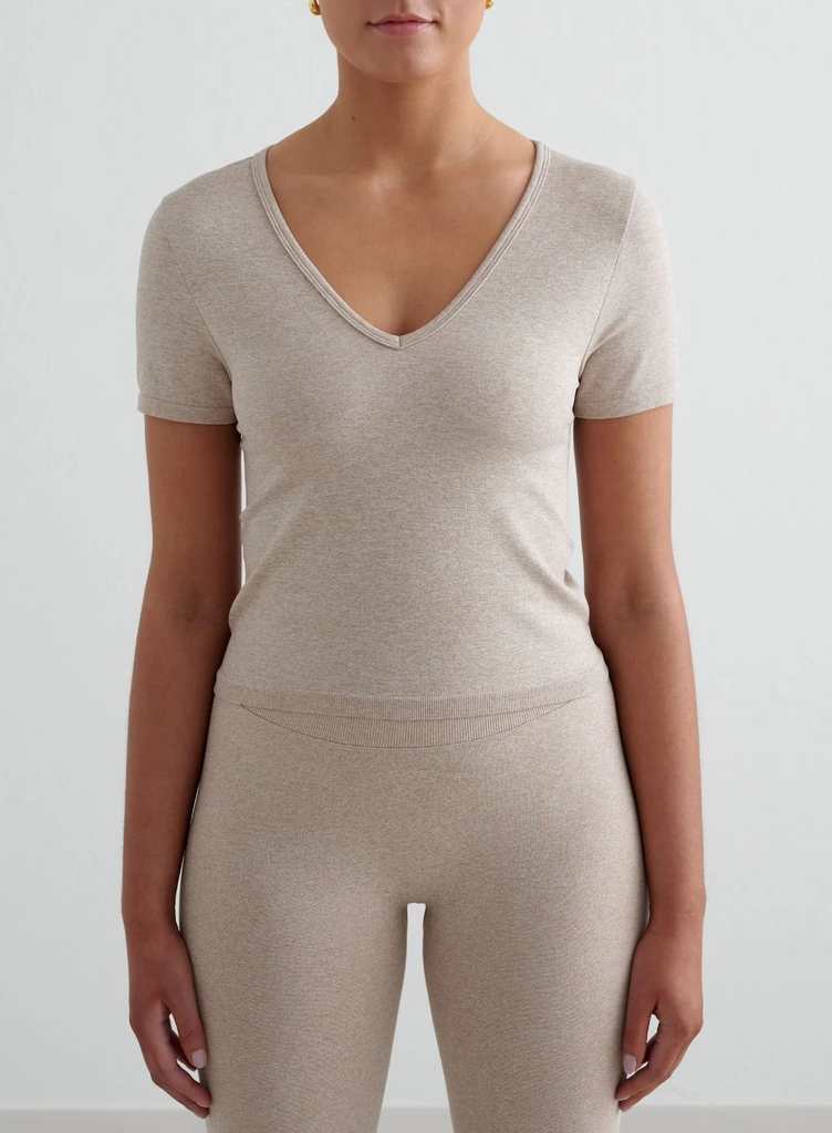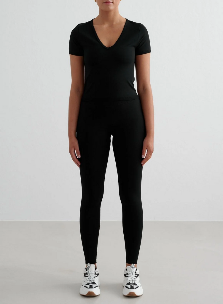 The Shape Seamless Short Sleeve is made from a signature, super stretchy Shape Seamless fabric. The t-shirt has a tight fit and short sleeves. The t-shirt has a v-cut neckline and ribbed details. The t-shirt has the aim’n logo at the back. Match with Shape Seamless Tights or Hotpants to create a matching set.