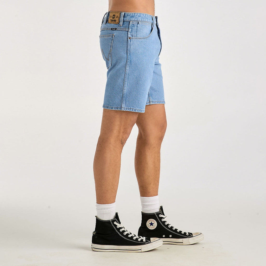 A long running staple in our library, the Smith short is a versatile mid length denim short. Designed with a slim top block and leg, that finishes just above your knee. Made in a stonewash blue.