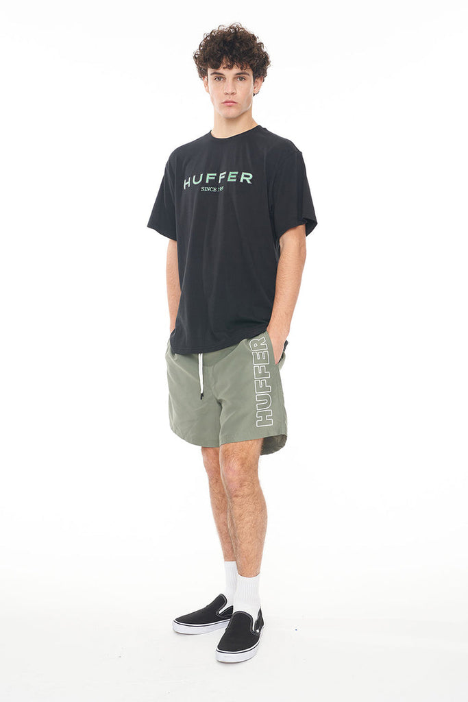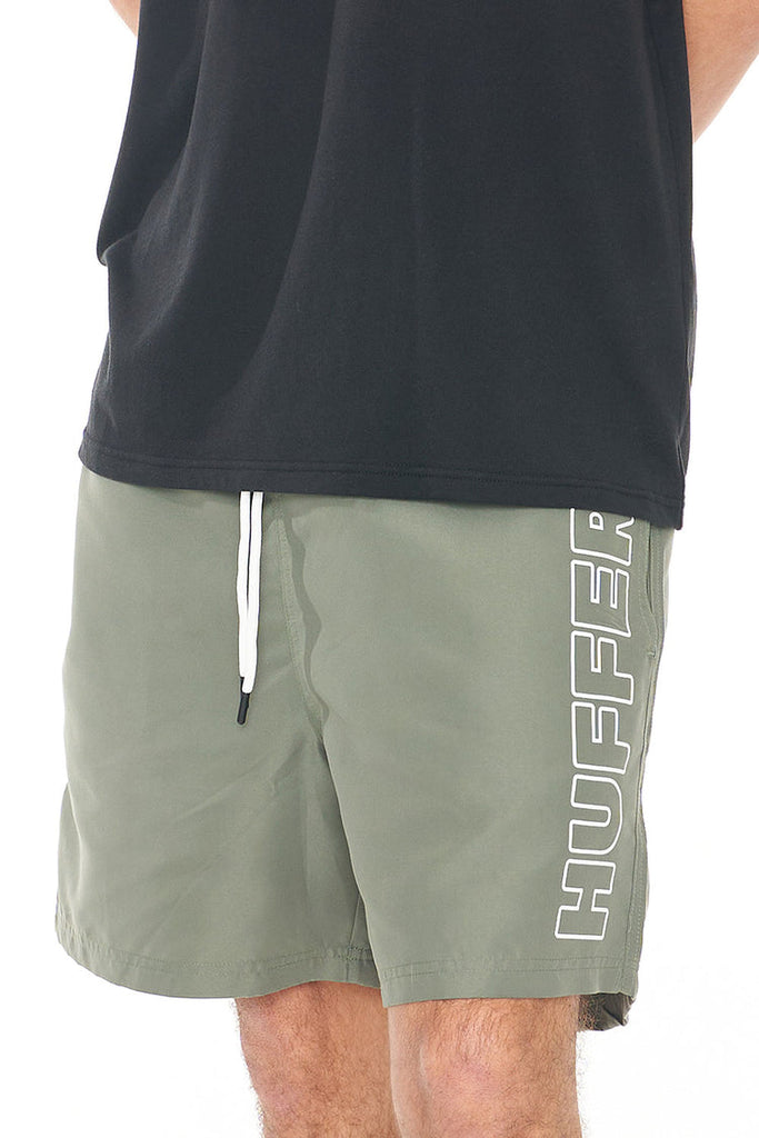 100% Polyester Microfibre / Quick dry / Mechanical stretch / Classic streetwear fit / 3 pocket detail / Elasticated waistband with drawcord / Huffer branded placement print