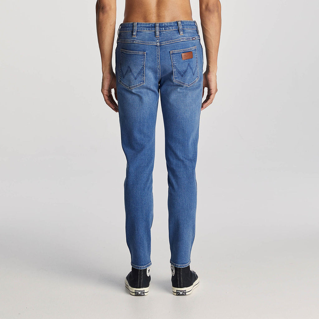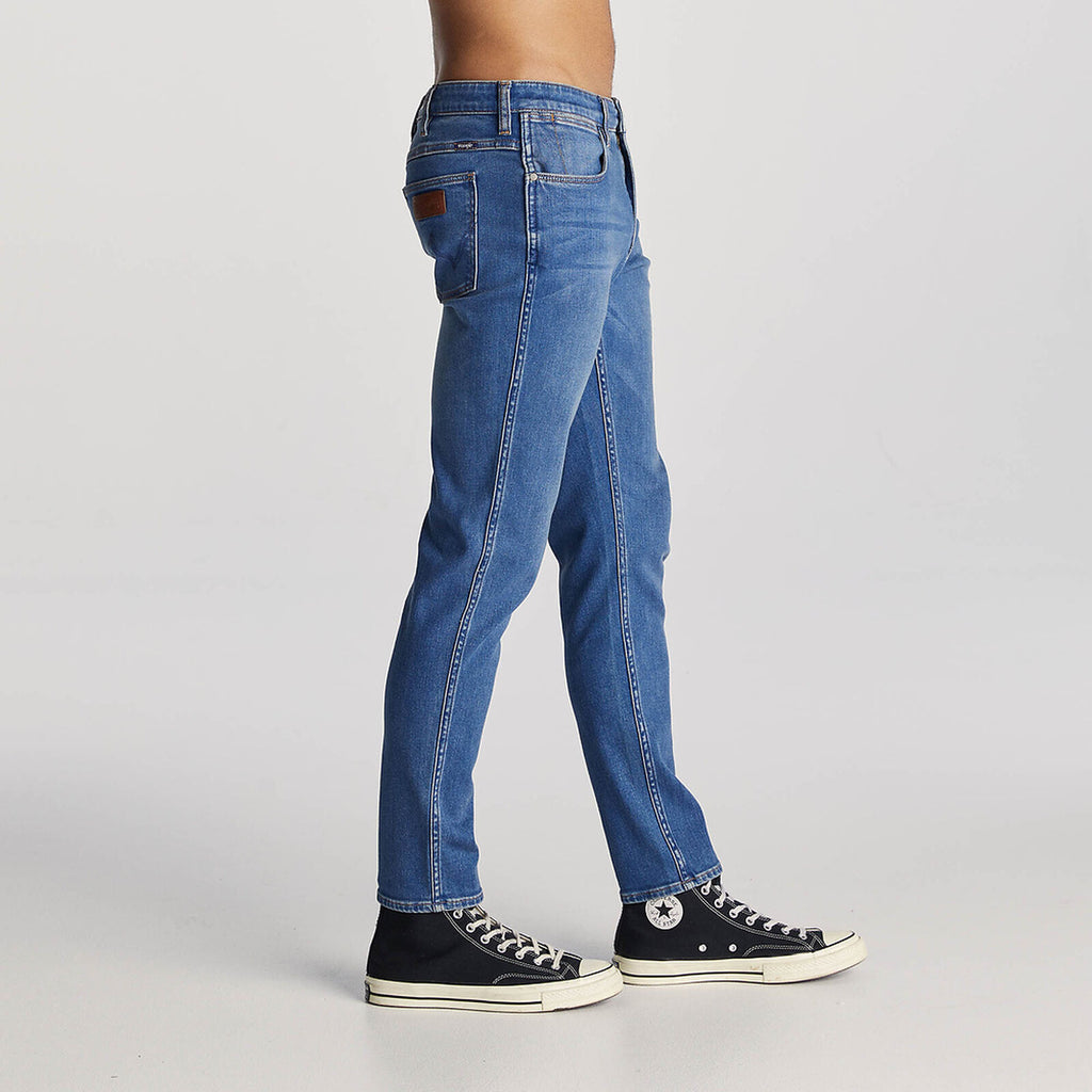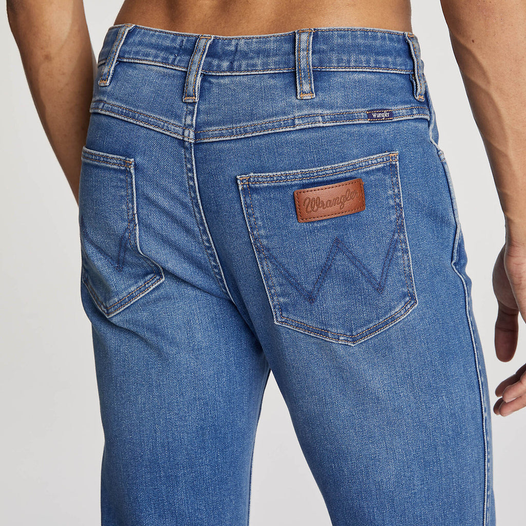 Stomper is Wrangler's original slim jean that has been a staple jean in many men's wardrobes for years. A lower rise than the Sid, and a more straight leg profile through to the hem.