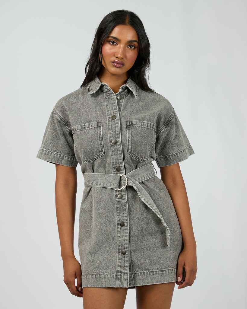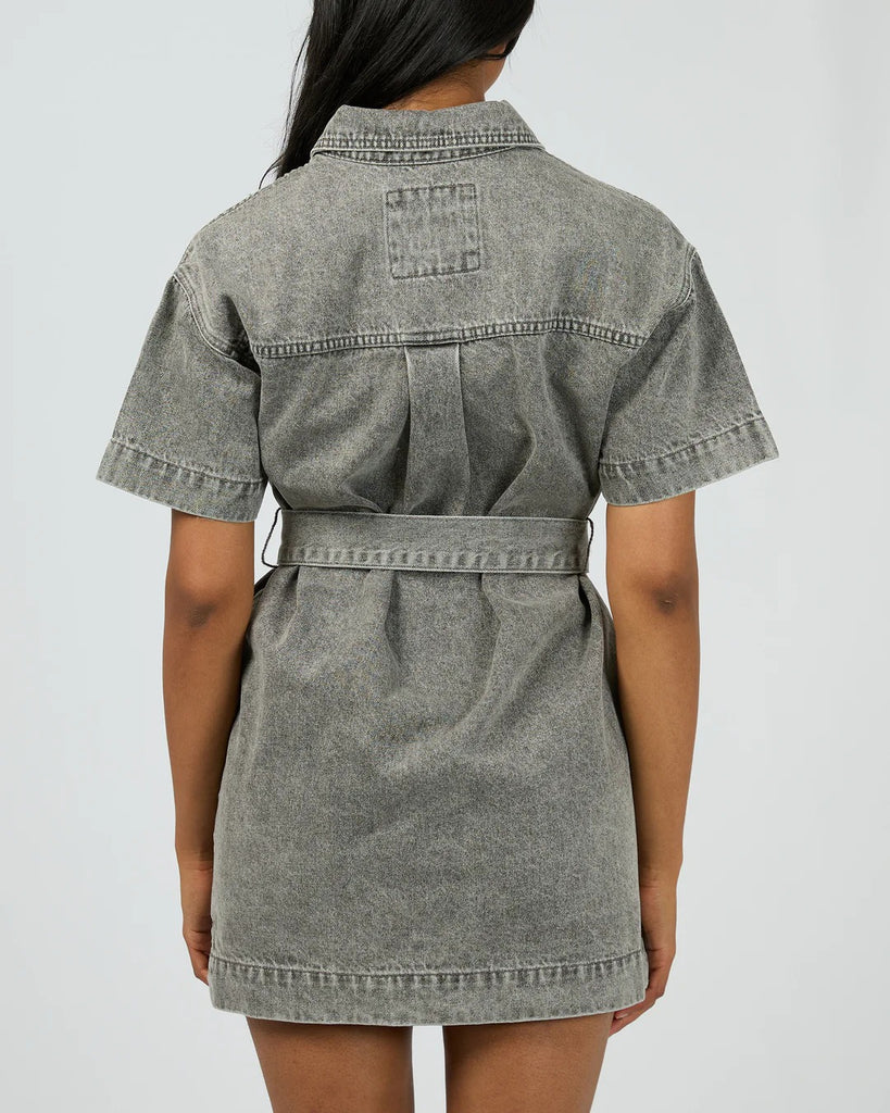 This Sunny Denim Dress combines classic style with practical details. Featuring a collared neckline and button-down front, it offers easy wear and a timeless look. The adjustable belt lets you customize the fit for comfort and flattering shape. Perfect for casual outings or layering, this mini dress brings effortless charm to your wardrobe.
