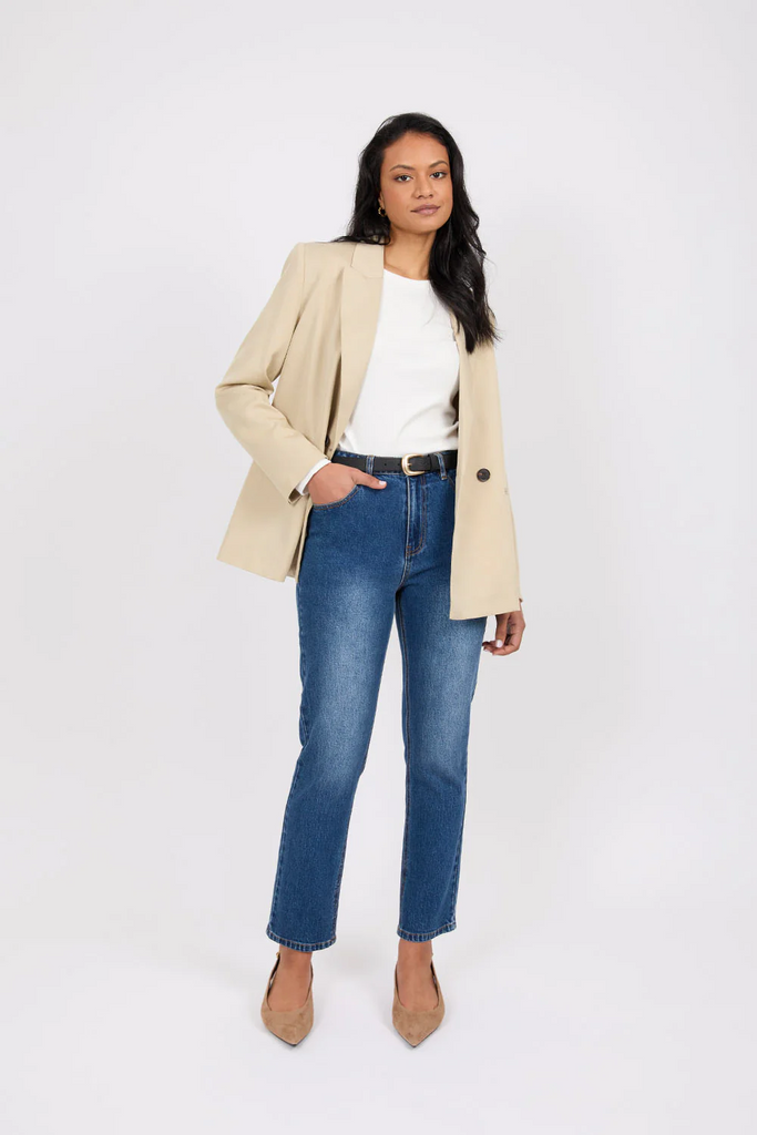 The Easy Straight redefines the classic jean, giving you the perfect fit to elevate your casual wardrobe. Enjoy a sleek mid-rise and clean straight leg that finishes just above the ankle. Crafted in premium organic cotton and a subtle touch of elastane, fusing structure with comfort, with features like minimal Marlow-branded hardware, zip fly, front and back pockets, this ultra-soft denim will become a regular in your weekly rotation. Easy to style and dress for any occasion, pair with your favourite shirt and heels for the office, or pop on a tee, trench and sneakers for weekends on the go.