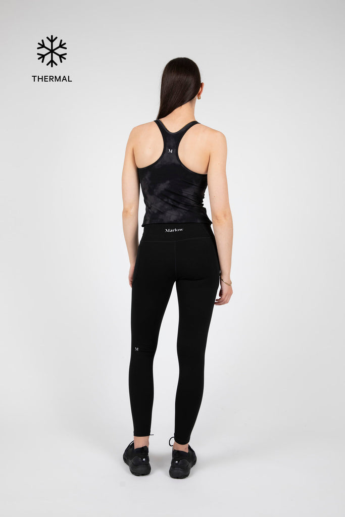 Experience unparalleled warmth with our Thermal Pace Full Legging. Featuring our Signature Thermofleece fabric, these leggings provide premium heat retention without bulk, ensuring a flattering silhouette. The moisture-wicking properties keep your skin dry and comfortable, drawing sweat away from your body to maintain optimal comfort. Designed with a comfortable high-rise fit and a full length leg for maximum warmth. Side pockets on each leg offer practical storage for all your essentials, while the heat-seal reflective Marlow logo on the back ensures visibility in low-light conditions. These leggings are the perfect combination of functionality and comfort, making them ideal for outdoor activities and chilly days.