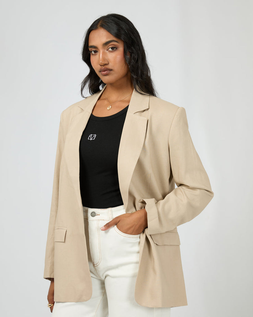 Elevate your wardrobe with this effortlessly stylish Toledo Blazer that’s sure to be a wardrobe staple! Crafted from a breathable and lightweight linen blend, this blazer combines comfort with a polished look. Perfect for transitioning between seasons, its relaxed fit provides a laid-back yet chic silhouette, making it versatile for both casual and semi-formal occasions. Pair with some jeans for a more casual look or over the top of a dress for a more evening look.