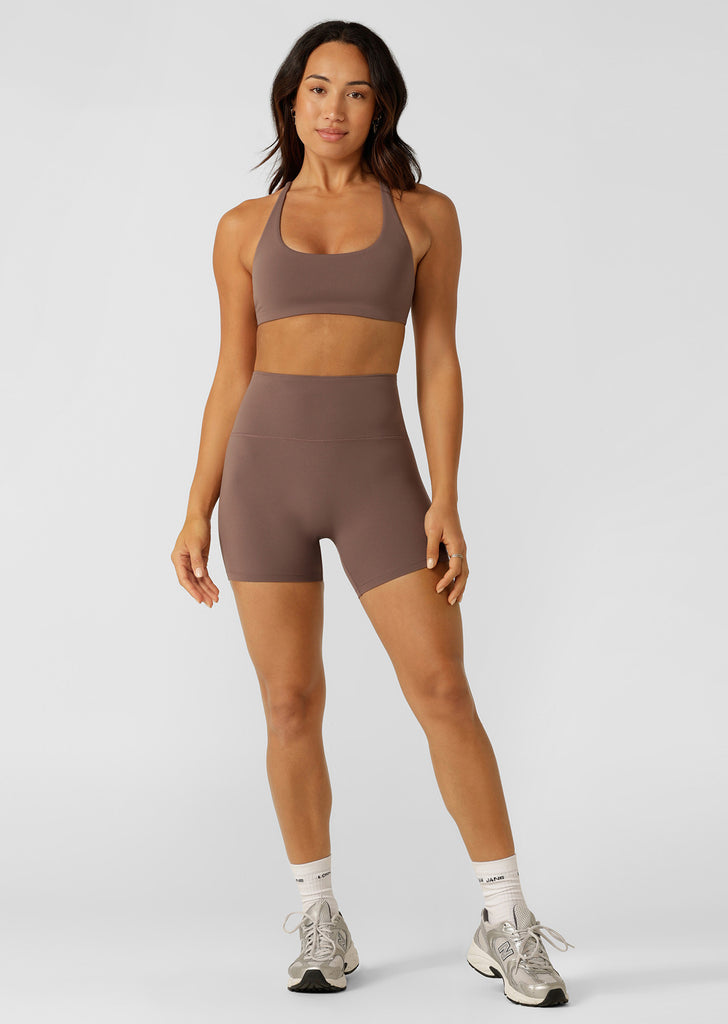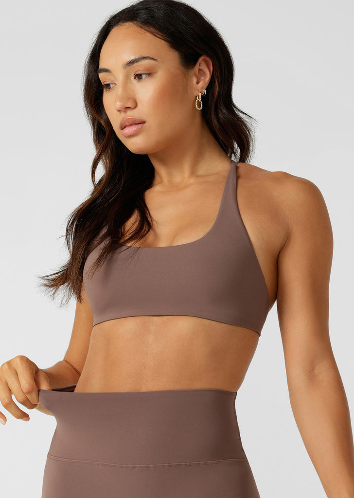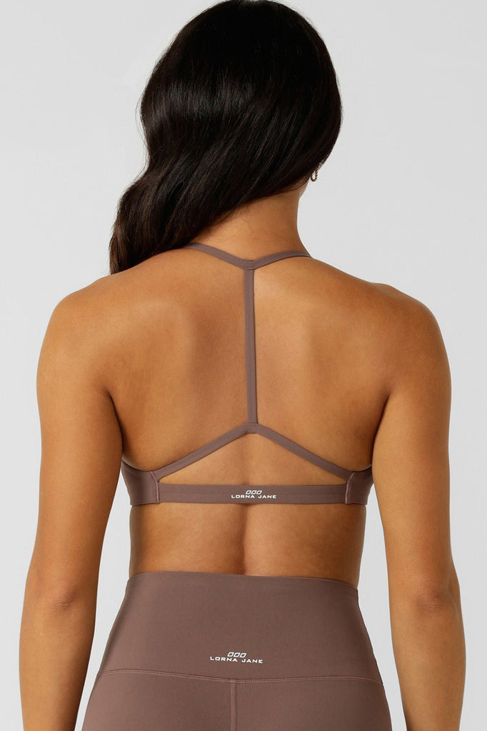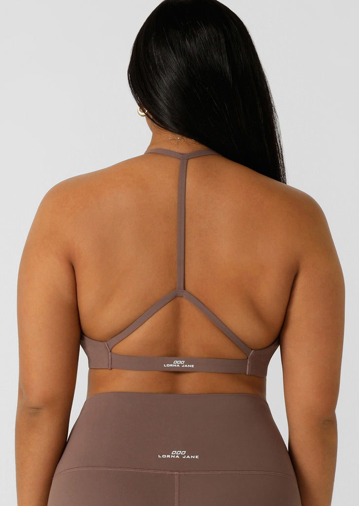 - Bonded Strappy T-Back Design Clears the shoulder blades