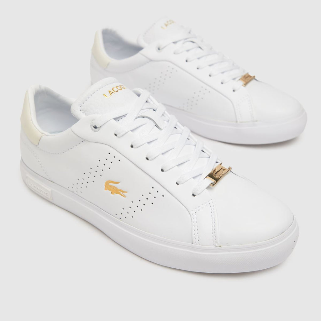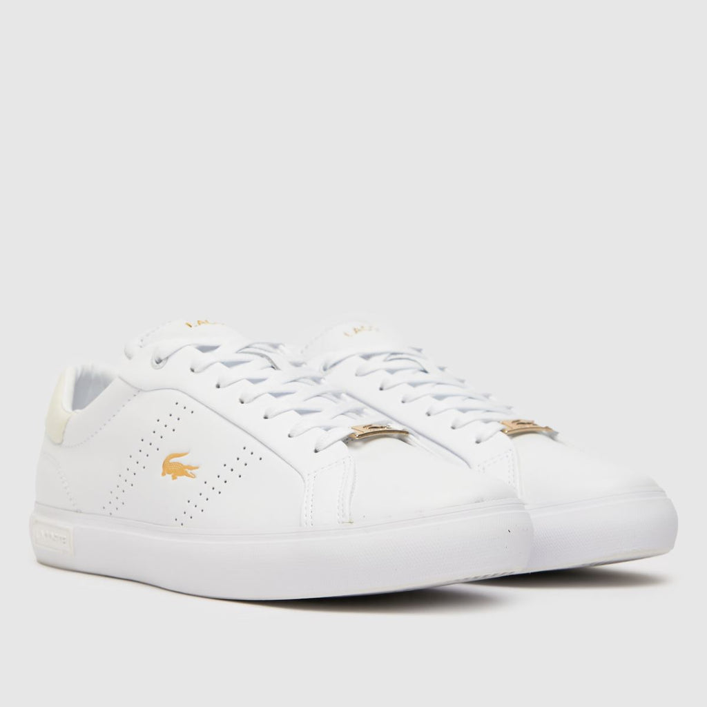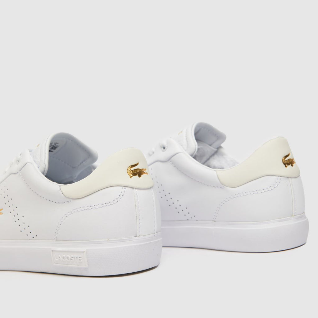 Freshen up your kicks with the Lacoste Powercourt in GOLD. This sneaker boasts a white and gold leather upper in a sleek and simple court silhouette for versatility. Complete with branding embossed. A fun addition to the Powercourt family!