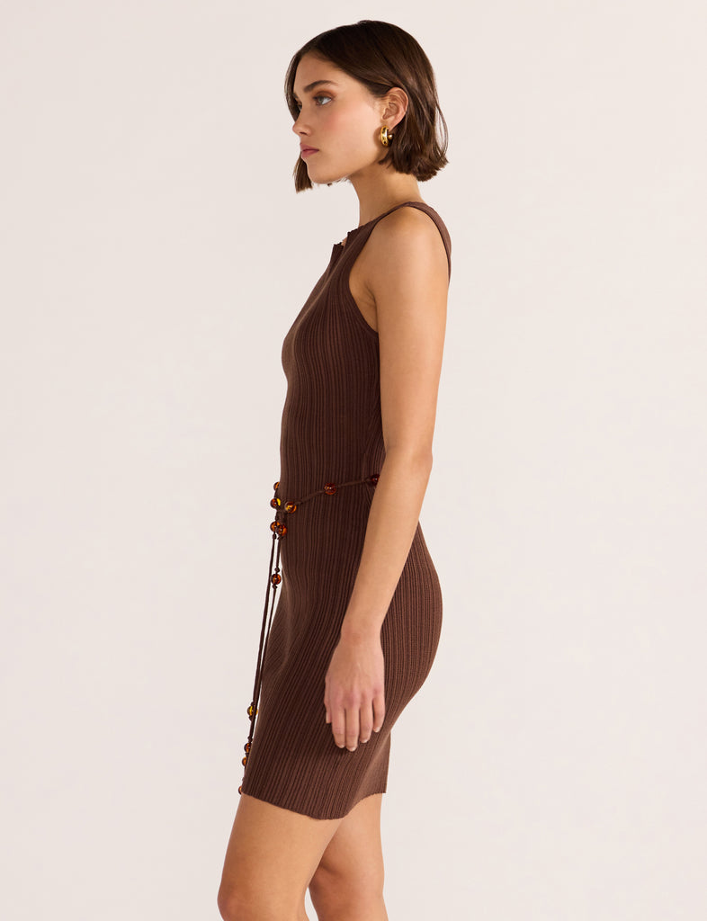 Zinnia Bead Knit Mini Dress | Chocolate - is backordered and will ship as soon as it is back in stock.